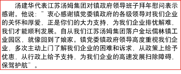金壇區(qū)儒林鎮(zhèn)政府領(lǐng)導(dǎo)班子來湯姆集團(tuán)拜年!
