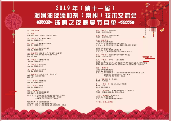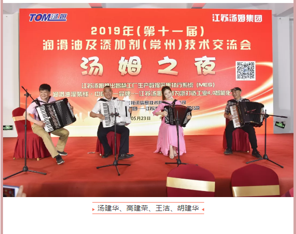 江蘇湯姆集團(tuán)熱烈祝賀2019年(第十一屆)潤(rùn)滑油及添加劑(常州)技術(shù)交流會(huì)隆重召開(kāi)。湯姆之夜,群情激昂