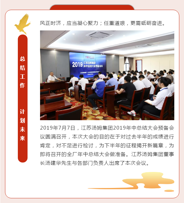 江蘇湯姆集團2019年中總結(jié)大會預(yù)備會議圓滿召開丨不忘初心,砥礪前行