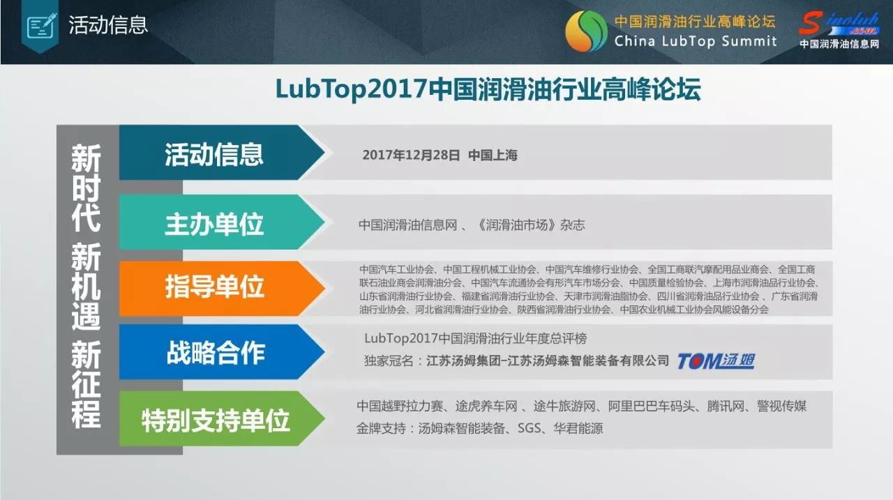 【潤滑油行業總評榜】江蘇湯姆集團獨家冠名Lubtop2017潤滑油總評榜,與您共登方舟,助您快速駛向工業4.0!