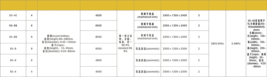 8、適用瓶型規格:圓瓶:直徑100mm~200mm 高度:80mm~280mm