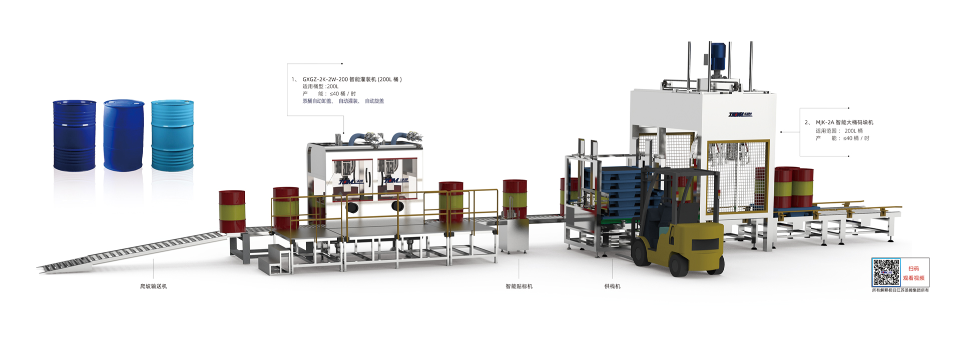 1、本線適用于農(nóng)藥、化工200L桶包裝規(guī)格產(chǎn)品灌裝。