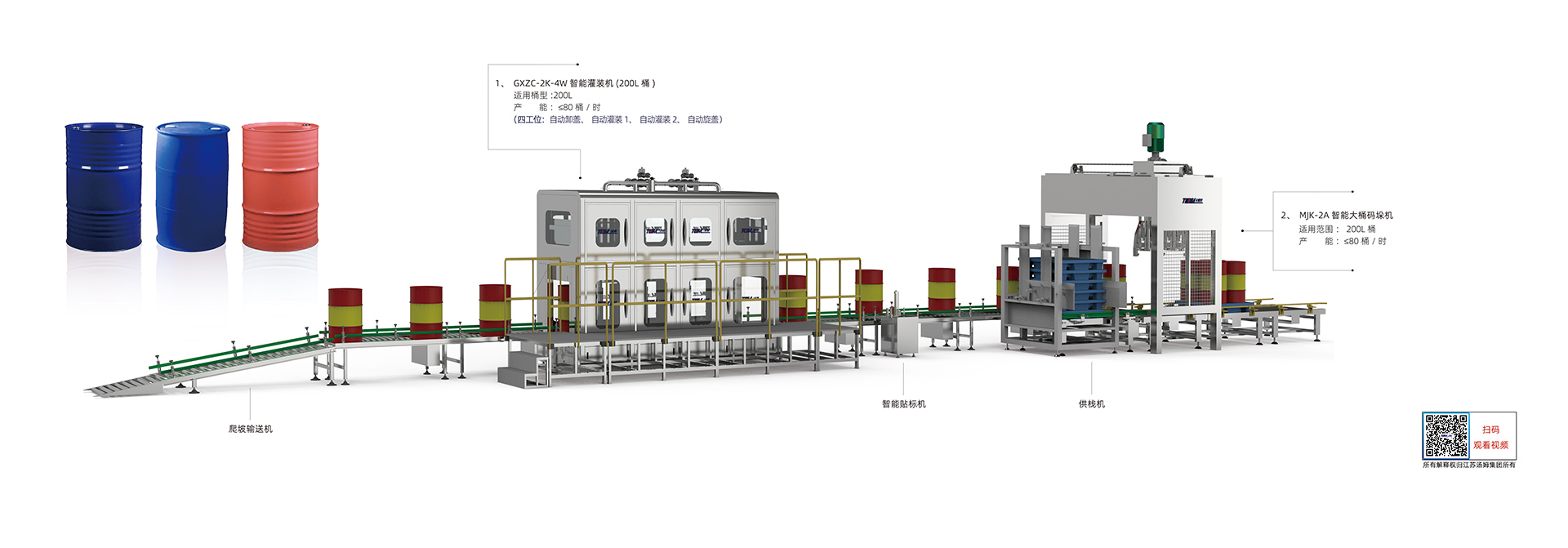 1、本線適用于農(nóng)藥、化工200L桶包裝規(guī)格產(chǎn)品灌裝。